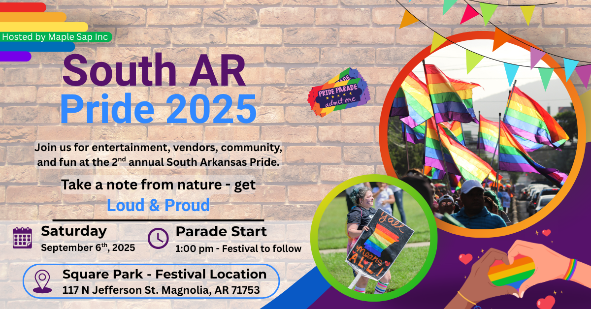 Every year Maple Sap inc. is devoted to hosting an annual Pride Festival in South Arkansas around September. The first year of this was 2024!!